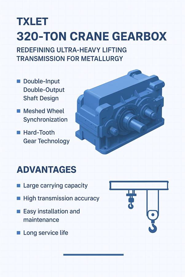 TXLET, a global leader in industrial drive and lifting solutions, proudly announces a groundbreaking engineering milestone — the successful development and delivery of a 320-ton overhead crane gearbox, a custom-engineered transmission system designed to power the most demanding metallurgical lifting operations on earth.
