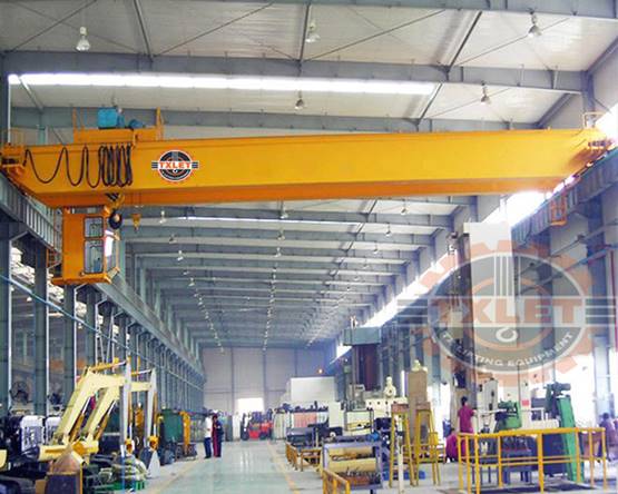 The LH double girder crane is in operation within a manufacturing facility, highlighting its industrial application
