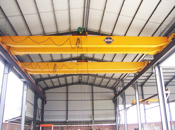 Hoisting mechanism: Utilizes an electric wire rope hoist, which is mounted on a trolley that travels horizontally along the top rails of the main girders.