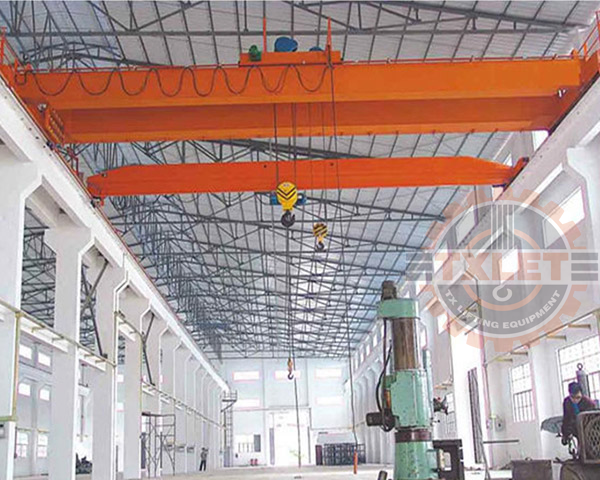 The LH double girder crane is in operation within a manufacturing facility, highlighting its industrial application